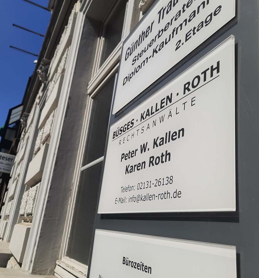Wir kombinieren unser umfangreiches Rechtswissen mit Einfühlungsvermögen und Engagement, um Ihnen zu helfen, die beste Lösung für Ihren Fall zu finden. Lernen Sie auf dieser Seite Ihre kompetenten Rechtsanwälte in Neuss und Umgebung kennen. Die Anwälte Kallen und Roth sind bestrebt, Ihnen die bestmögliche Rechtsberatung zu bieten, die speziell auf Ihre Bedürfnisse zugeschnitten ist.